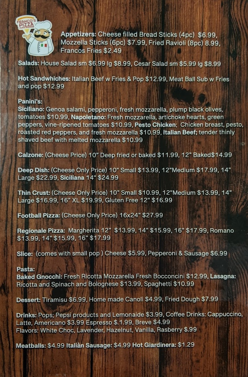 The atmosphere is casual, yet the quality of the food feels like a true trattoria experience. Franco's Pizza & Trattoria offers a warm, inviting vibe that pairs beautifully with their delicious offerings. Dig in and enjoy!